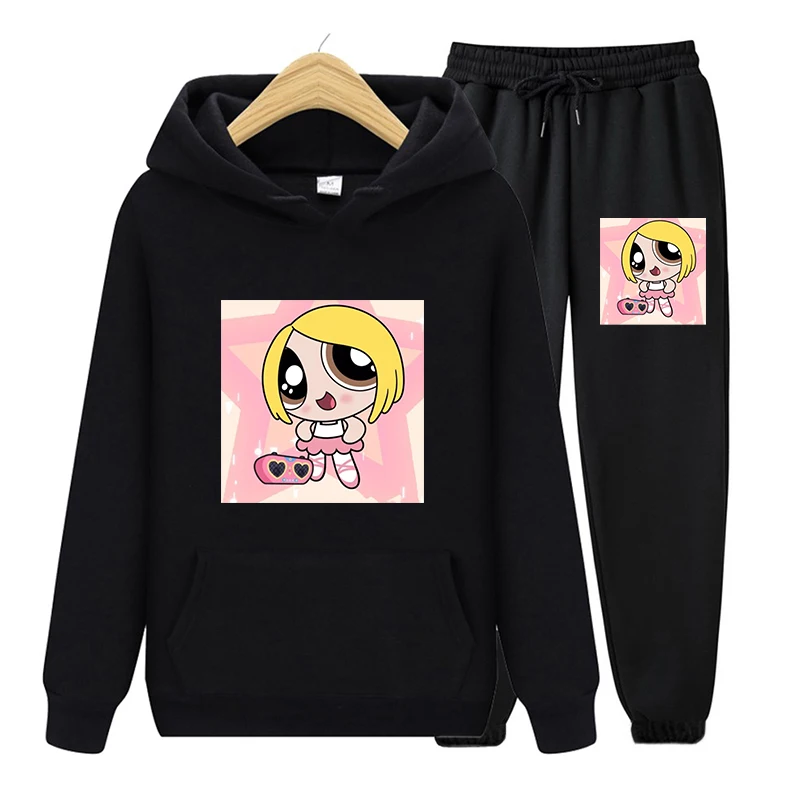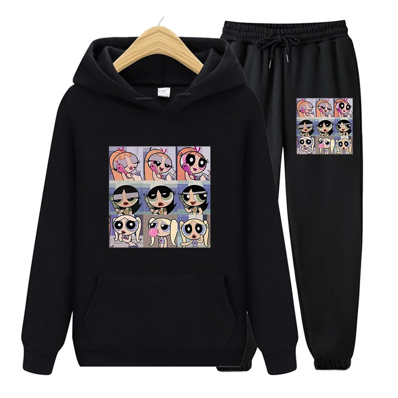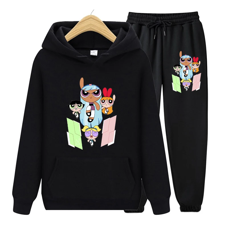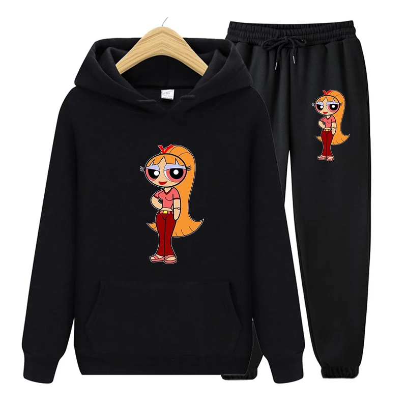 Женский спортивный костюм в стиле Харадзюку, черная толстовка с кап...