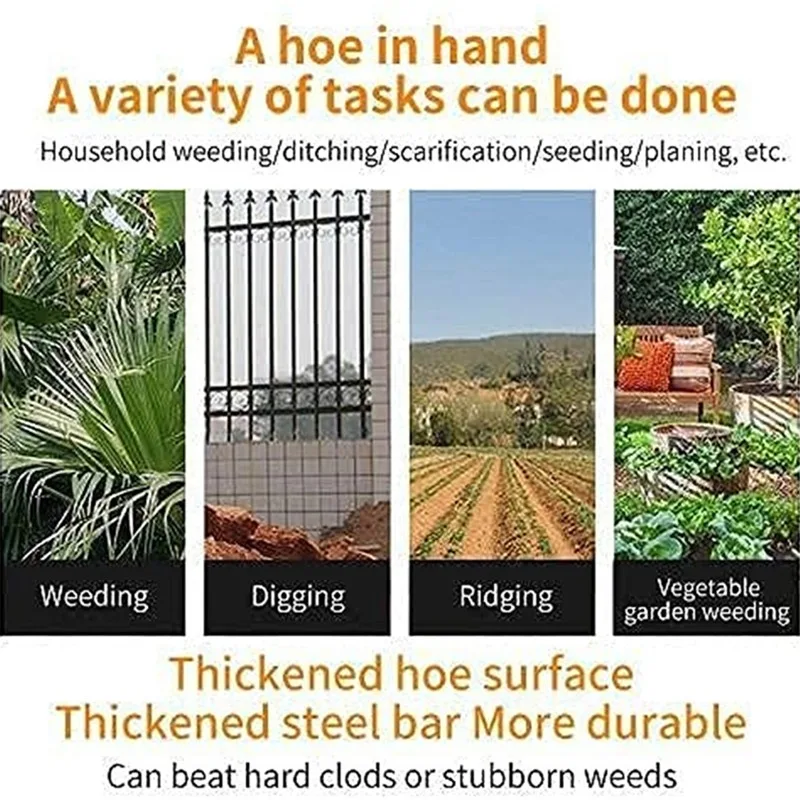 Особенности:<Высококачественный материал: Изготовлен из мягкой стали, которая очень прочная. Он принимает процесс закалки, без антикоррозийной полировки, хороший внешний вид и длительный срок службы.<Простота в использовании: после того, как мотыга вытянулась, просто потяните ее обратно, чтобы быстро сорвать.<Широкое применение: бытовые грабли для сорняков используется для сорняков/обрезания/скарификации/сева/строгания и многого другогоШироко используется: это очень практичный ручной инструмент для садовников. Он используется для ежедневных садоводческих работ, таких как прополка, ослабление почвы, посадка овощей и многое другое.<Практичный в использовании: Эта мотыга ручной работы очень острая, помогая вам повысить эффективность.<Многофункциональность: удобно и легко сажать цветы и овощи, прополка, отвод, ослабление почвы, сев, строгание и многое другое.<Эргономичная ручка: ручка имеет эргономичный и нескользящий дизайн, удобный для захвата. Легкая и легкая прополка и рыхление почвы