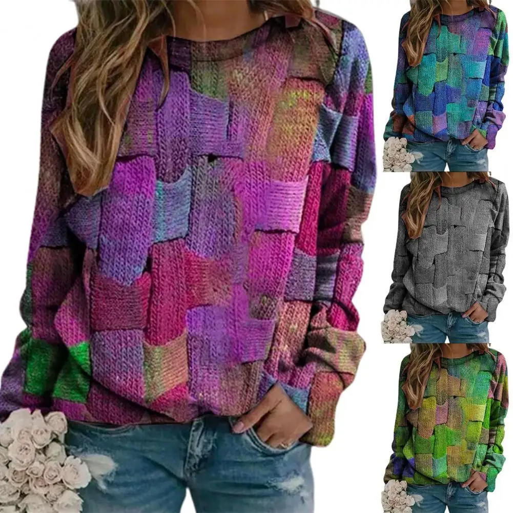 Женский вязаный пуловер с галстуком, цветной свободный свитер с круглым вырезом, в винтажном стиле