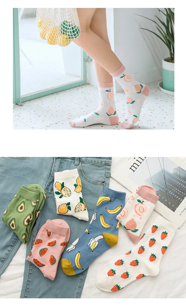 Кавайные забавные женские носки с фруктами в стиле Харадзюку Разноц...