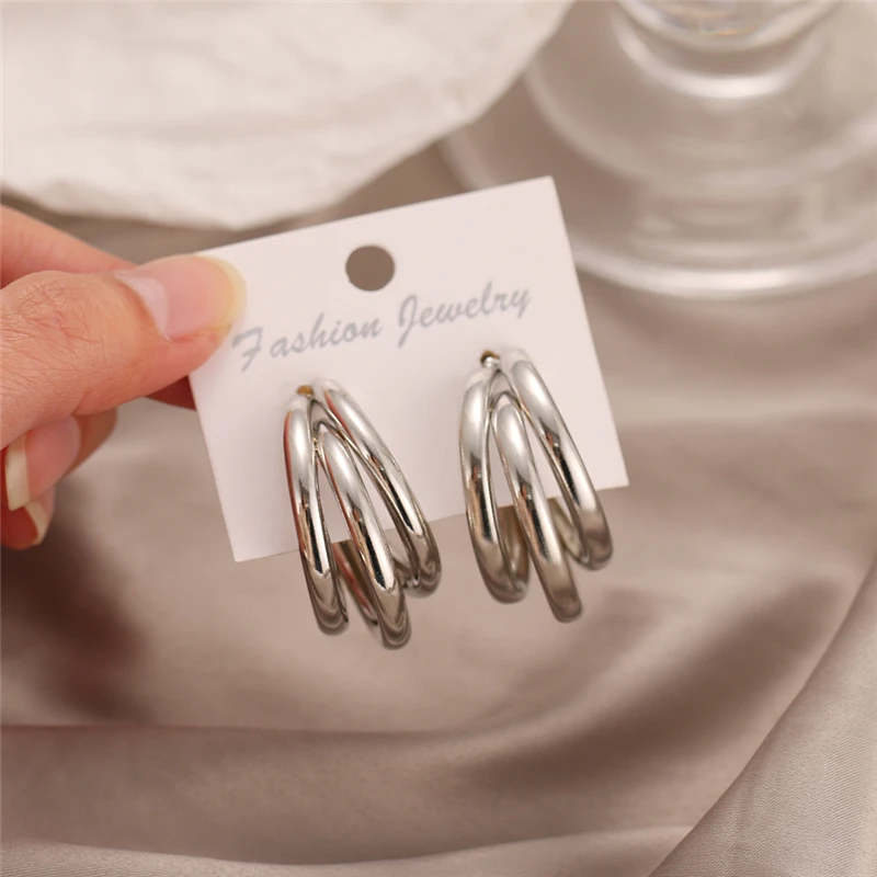 New DesignTrendy Alloy Three-layer Earrings Ear Accessories