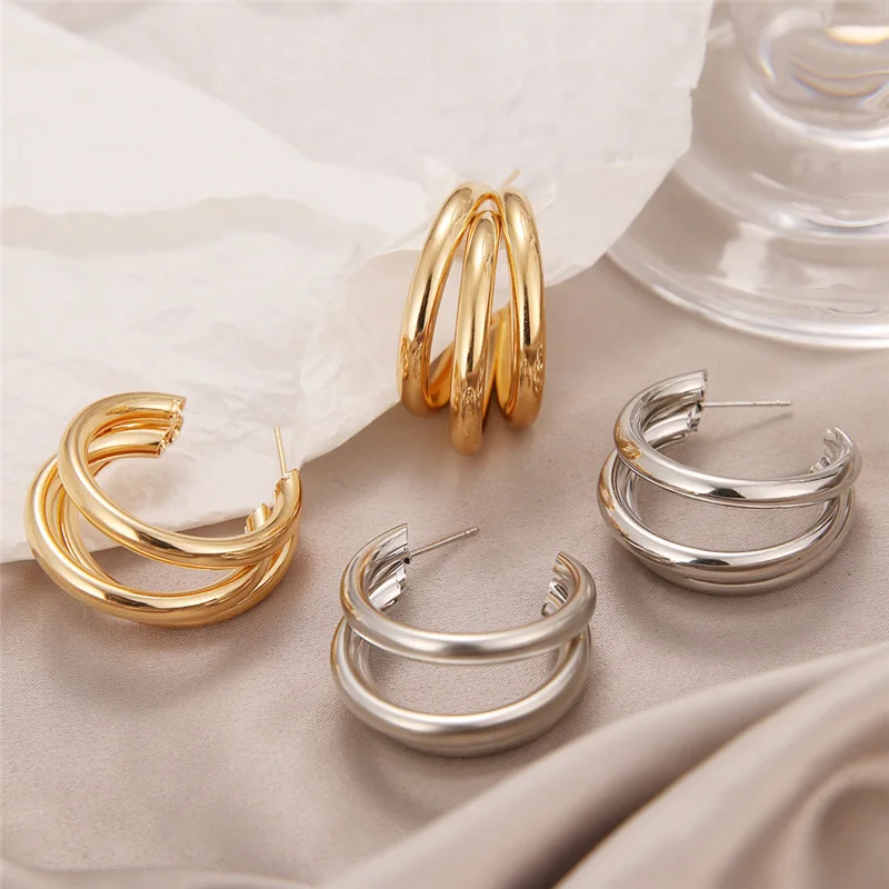Модные золотые и серебряные металлические геометрические серьги для женщин, оригинальный дизайн, большие круглые серьги в стиле панк, эффектные украшения
