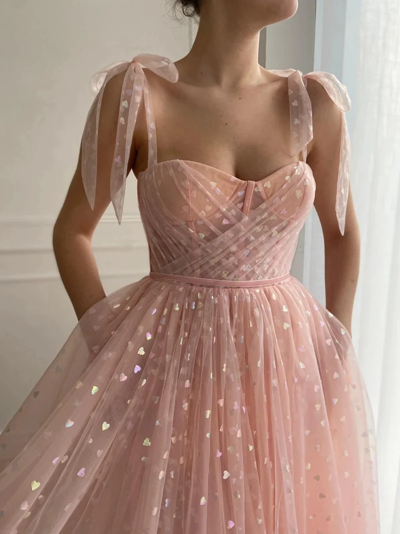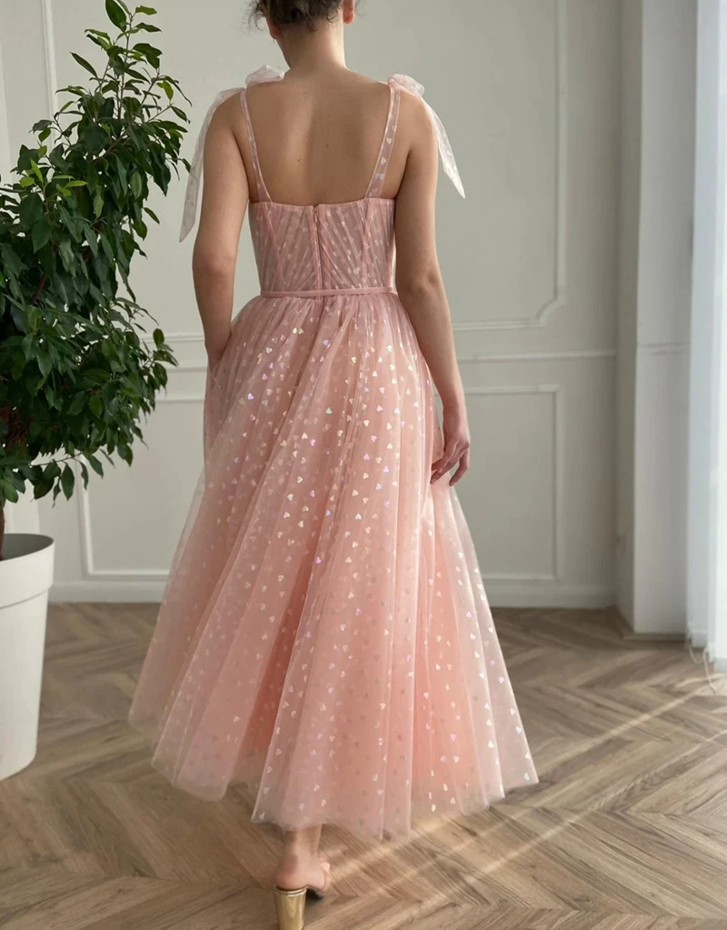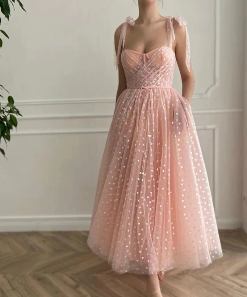 Блестящие платья для выпускного вечера LORIE, милое свадебное платье длиной до середины икры, Короткие коктейльные платья для выпускного вечера, нежно-розовый тюль
