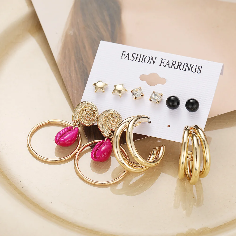 Boho золотыми кружочками имитация жемчуга геометрические серьги ком...