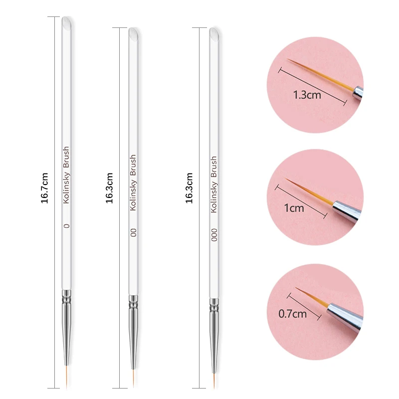3 шт.компл. Kolinsky гель для ногтевого дизайна, кисти для рисования, кристалл, акрил, тонкие искусственные элементы