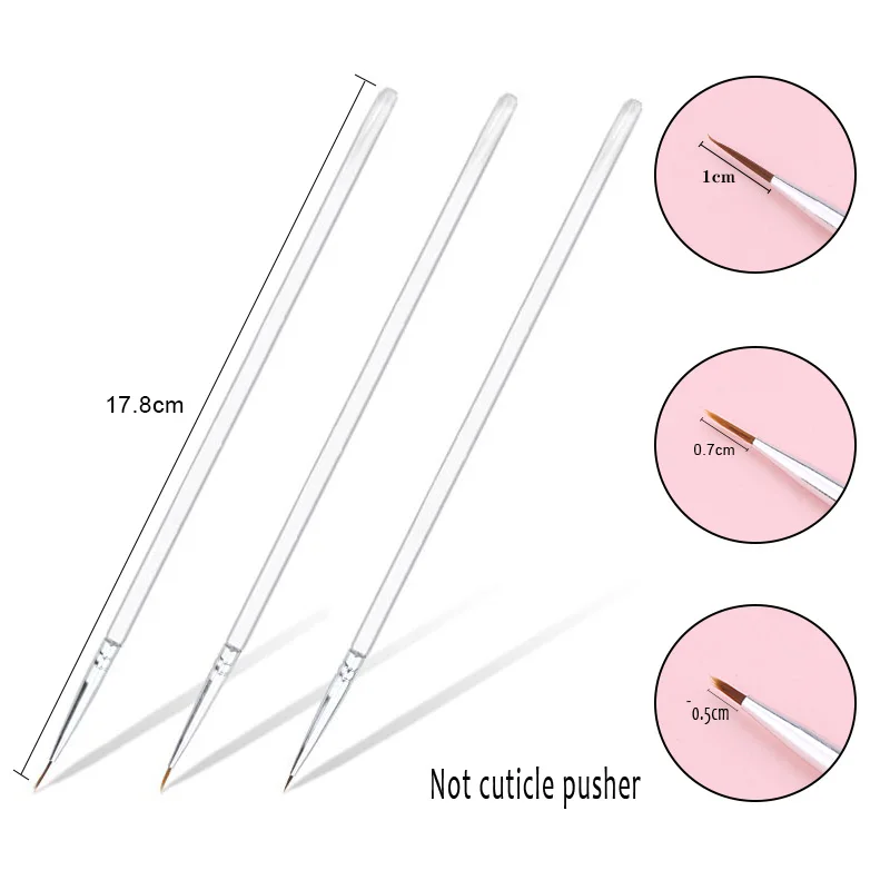 Кисть для дизайна ногтей, прозрачная акриловая, 2 способа, 3 шт.