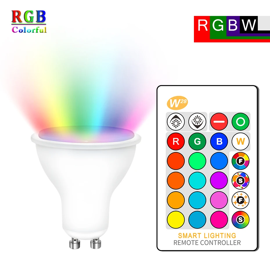 Светодиодная лампа GU10 RGBW подсветка RGBWW, приглушаемая лампа с 16 цветами, ИК пульт дистанционного управления, функция памяти, освещение для дома
