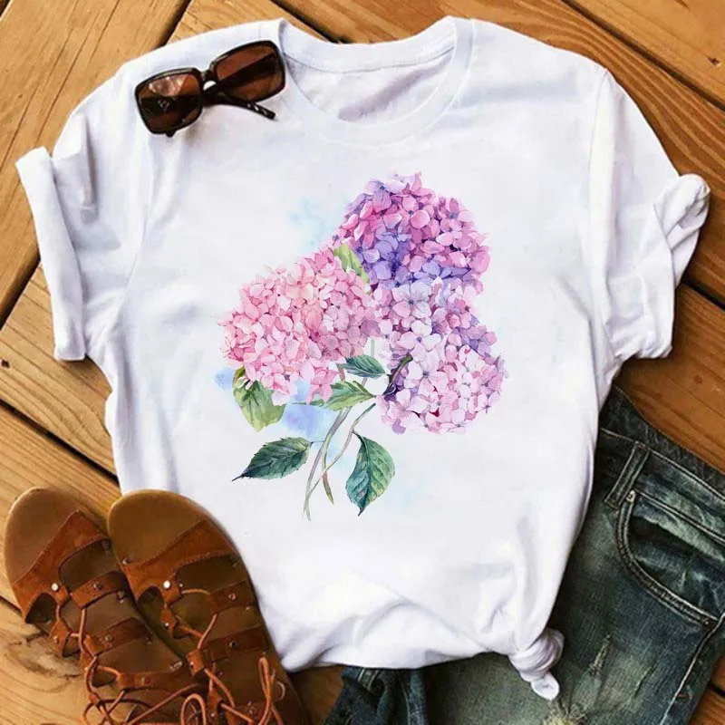 Новая модная женская футболка с гортензией, женская футболка с коро...
