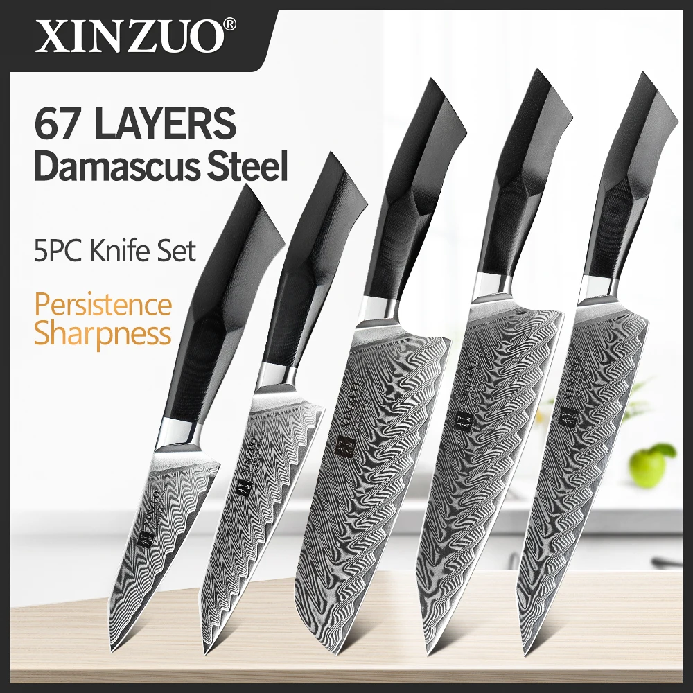 Набор ножей XINZUO в японском стиле, кухонный резец из дамасской стали VG10, острый нож шеф-повара, слайсер для стейков Gyuto, 5 шт.