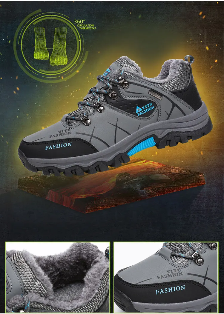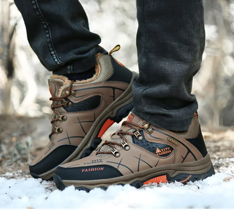 Мужские зимние кроссовки, зимние ботинки для мужчин, водонепроницаемые, кожаные, для спорта на открытом воздухе, модные, для пеших прогулок, теплые, для работы, повседневные, атлетические ботинки