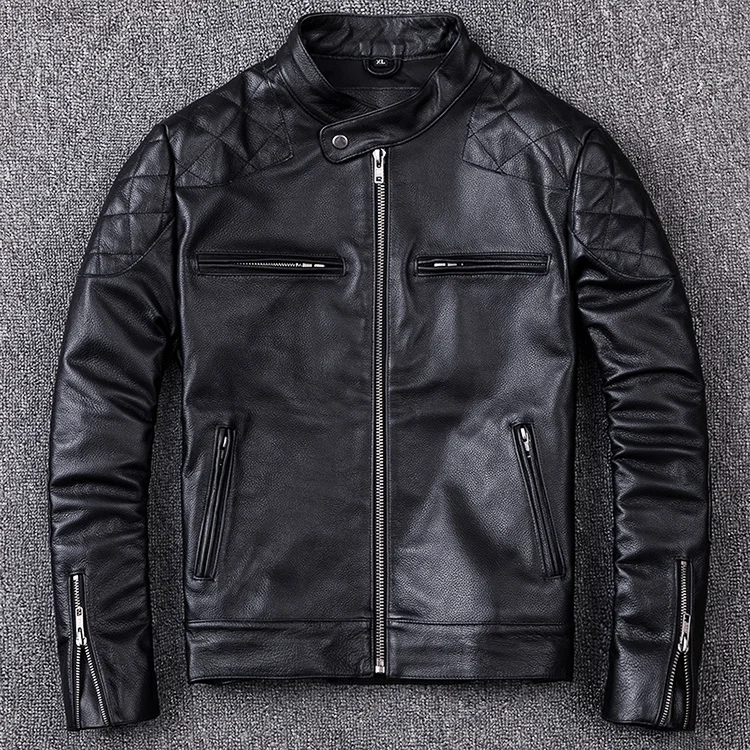 Мужская Байкерская кожаная куртка, мотоциклетная куртка из натуральной воловьей кожи, облегающее пальто, весна-осень