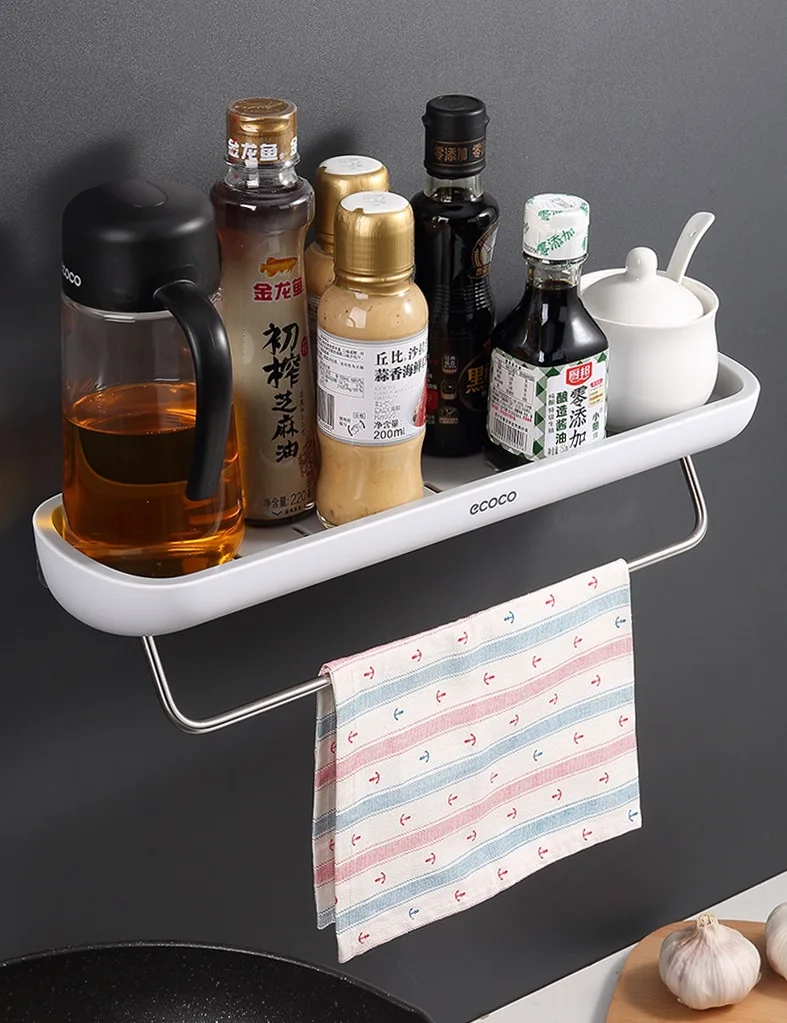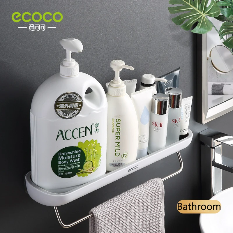 Полки для ванной комнаты ecoco, настенный кухонный органайзер, полка для домашних полотенец, полка для шампуня с вешалкой для полотенец, полка для хранения в ванной комнате