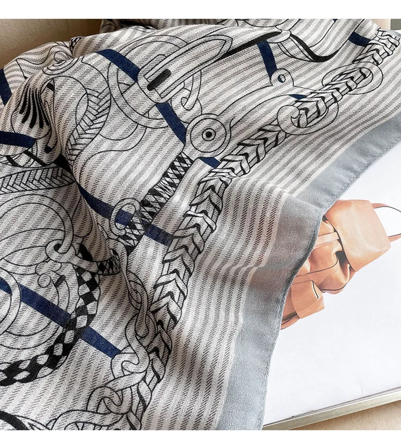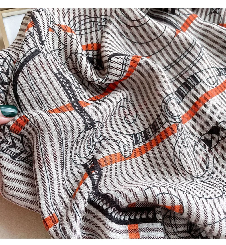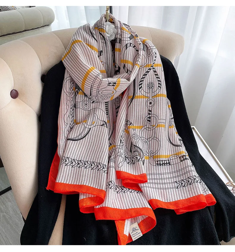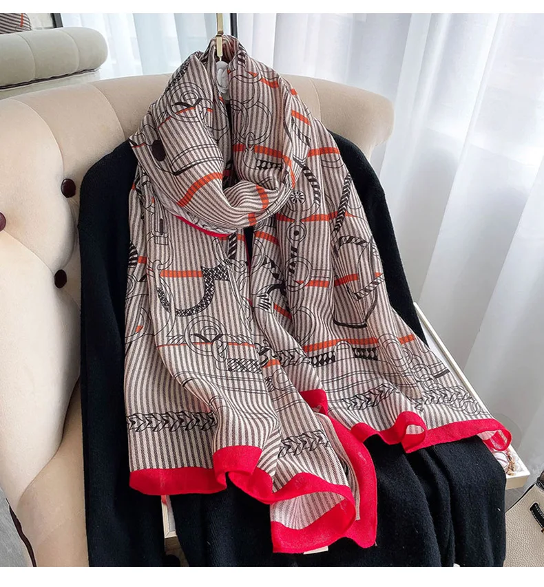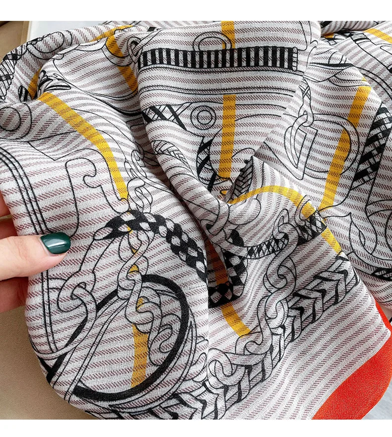 Роскошный бренд 2021, Осень-зима, женская модель, хлопковые женские модные шарфы-цепочки, бандана, Пашмина, хиджаб, глушитель