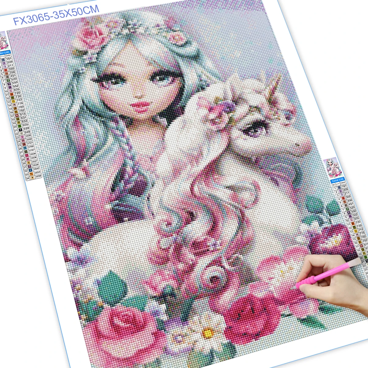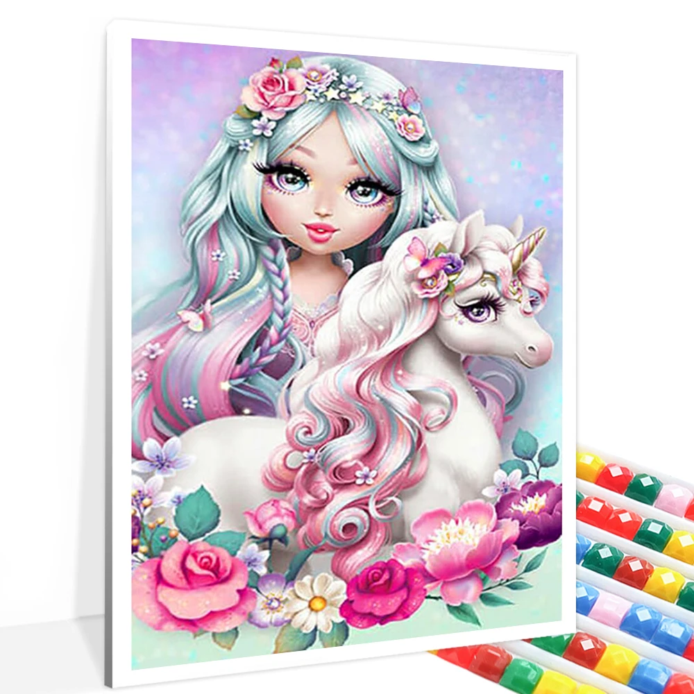 Алмазная 5D картина сделай сам, рог, лошадь, девочка, полное сверло, мультяшный Волшебный Единорог стразы, вышивка крестиком, мозаика, домашний декор, подарок для детей