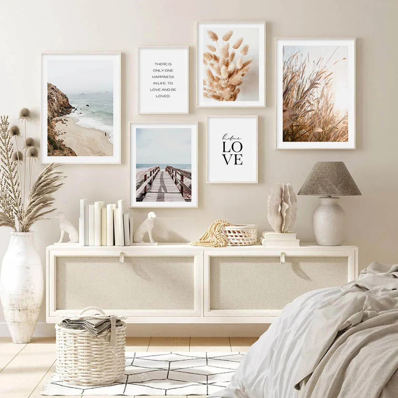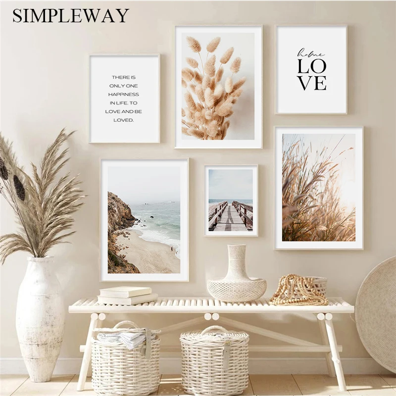 Картина на холсте, настенное искусство, бежевая трава, закат, пляж,...