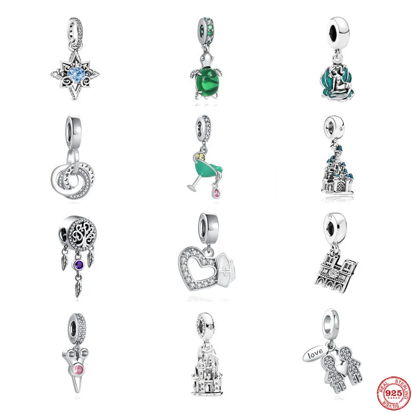 Женский браслет с бусинами Черепаха, подвеска-Ловец из серебра 925 пробы