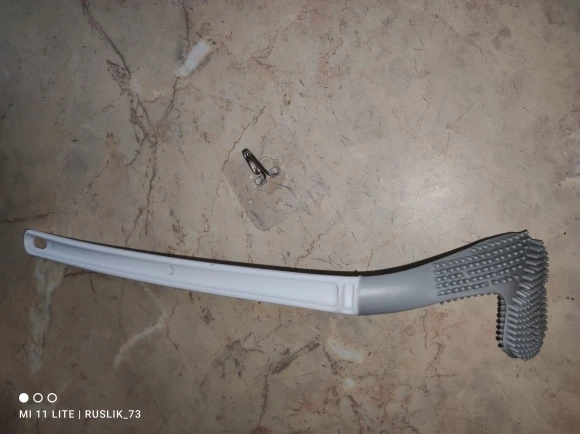 хорошая щеточка. к ней продавец приложил хорошо приклеивающийся к стенке крючок, что повесть щётку