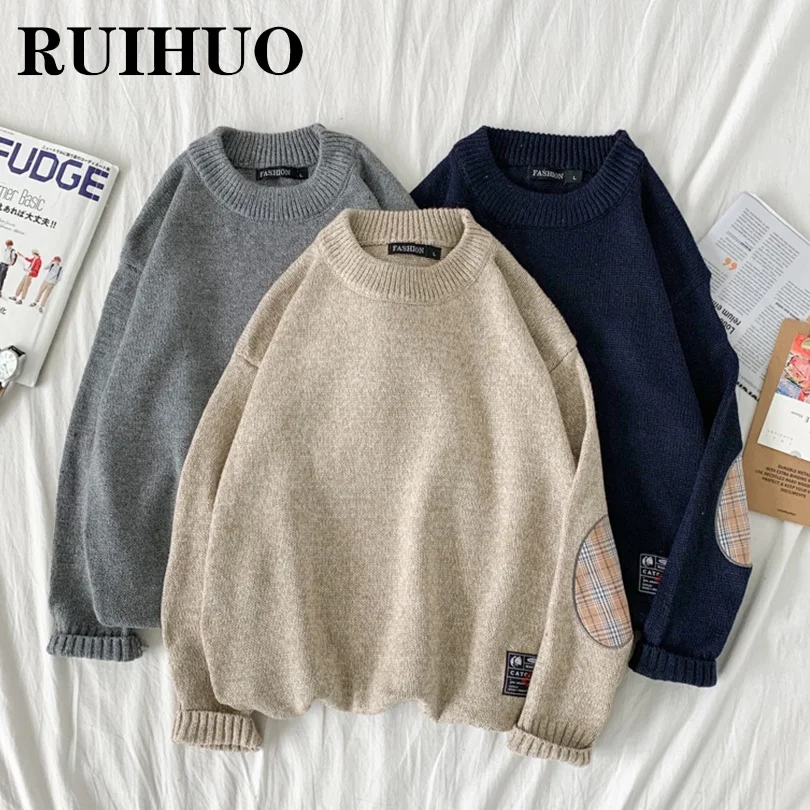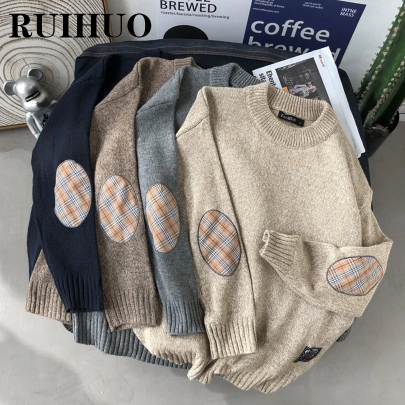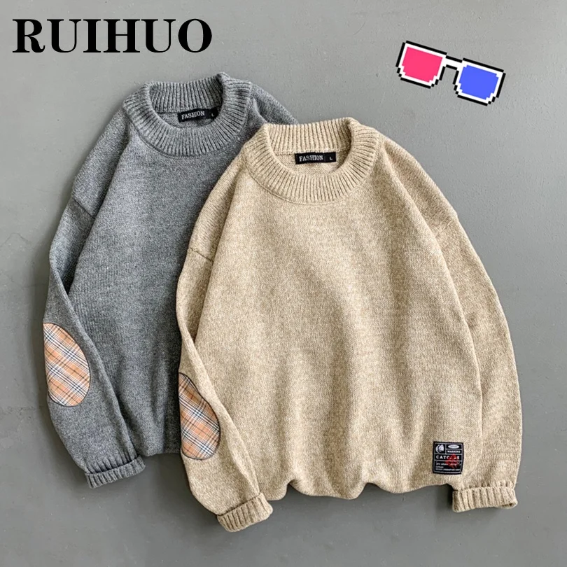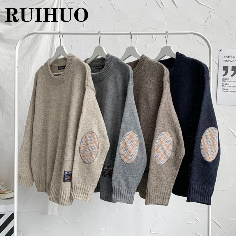 RUIHUO лоскутный корейский свитер Мужская одежда Харадзюку Модные мужские свитера пуловеры ретро одежда 5XL 2022 новое поступление