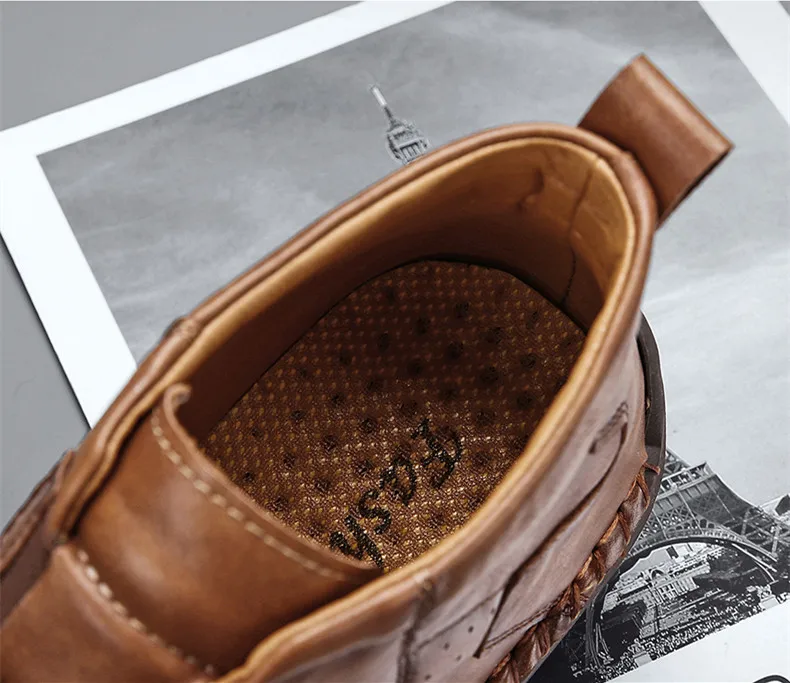Мужская повседневная обувь, кожаные кроссовки ручной работы, дизайн...