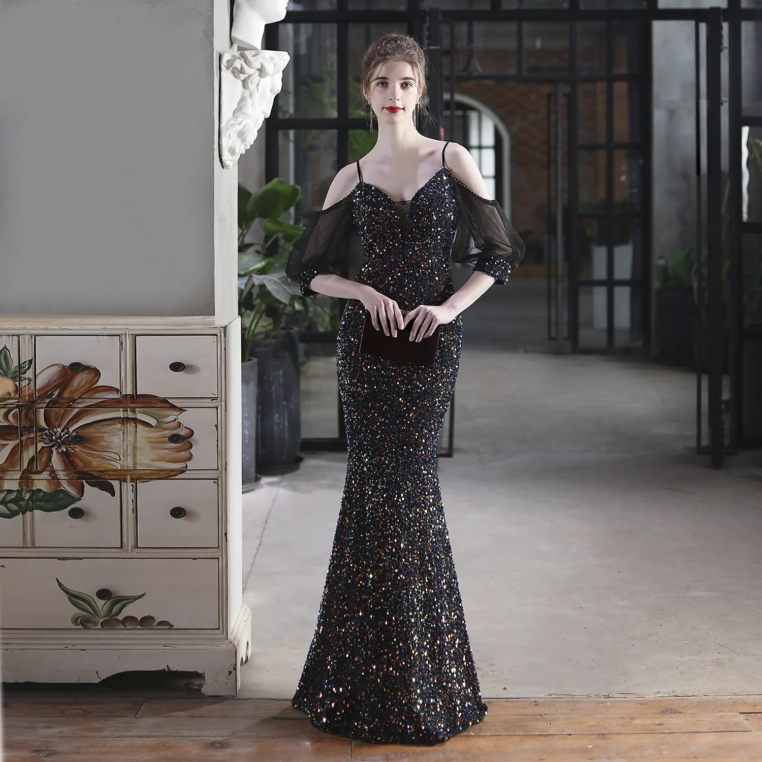 Новинка, Длинное Элегантное коктейльное платье, платья с блестками,...