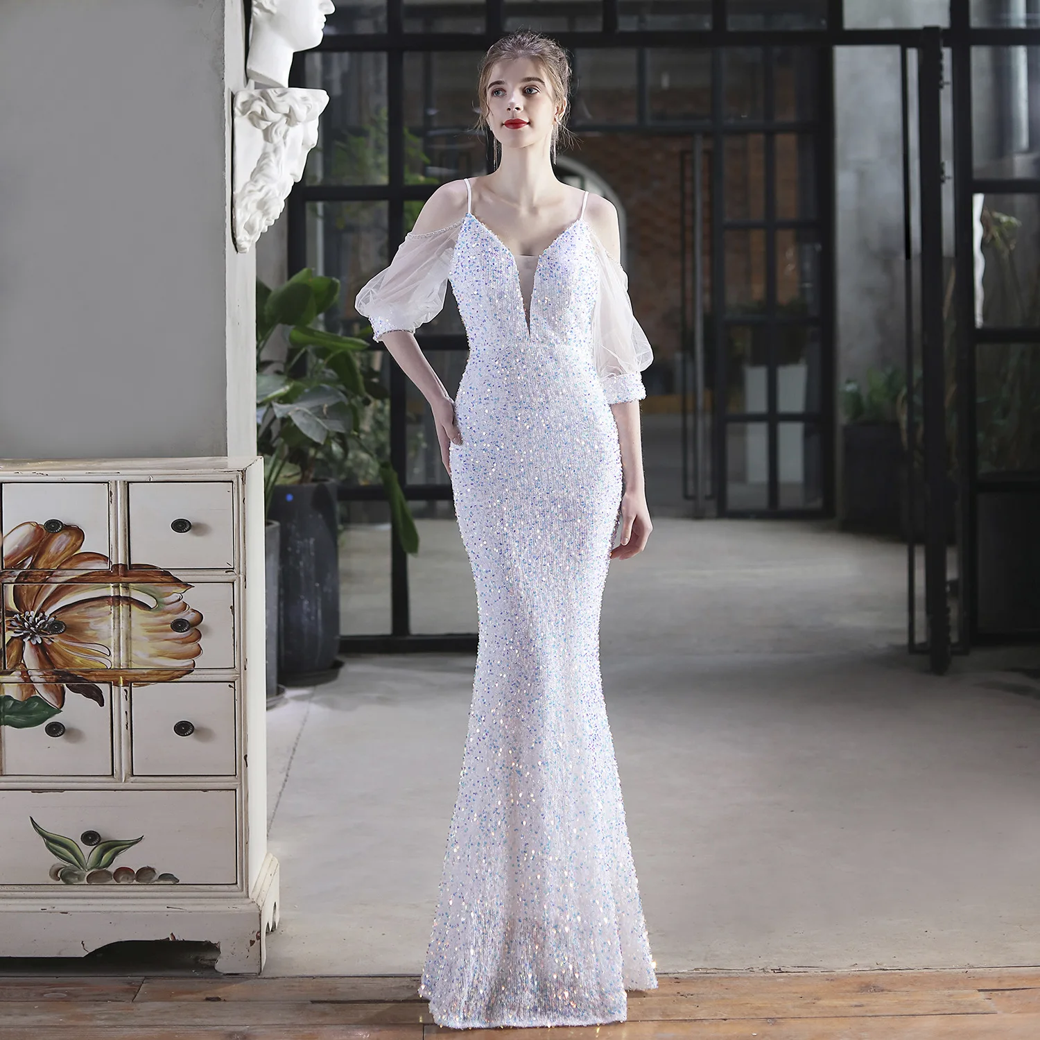 YIDINGZS 2022 сексуальное длинное белое вечернее платье с блестками...