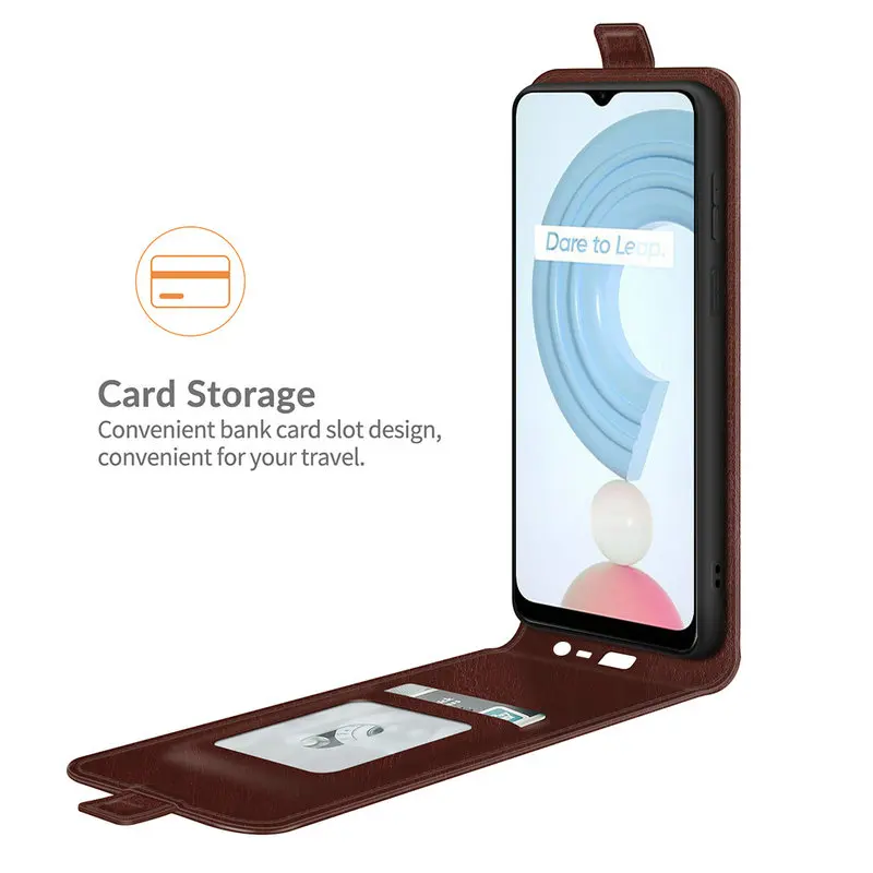 Оригинальный кожаный чехол-книжка с кошелькомМатериал> ПУ + силиконЦвет> черный, красный, коричневый, белыйПодходит для>Для Realme C21Y/6,5"