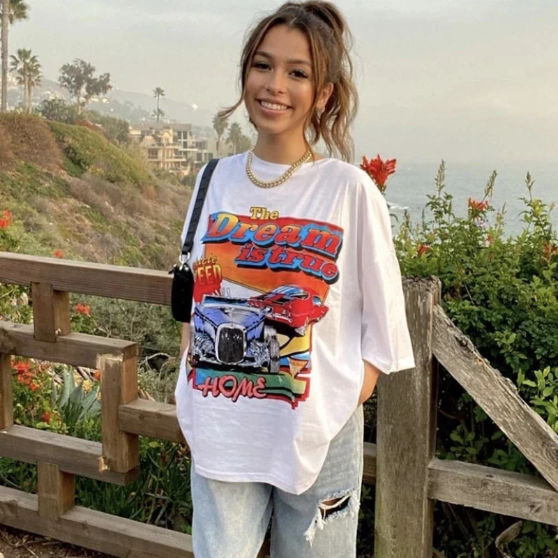 Футболка женская оверсайз с коротким рукавом, винтажный топ с принт...