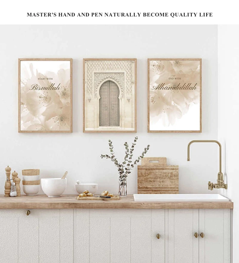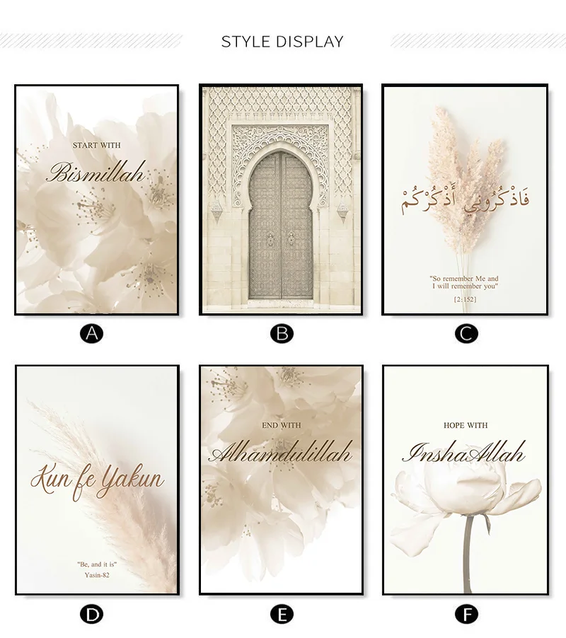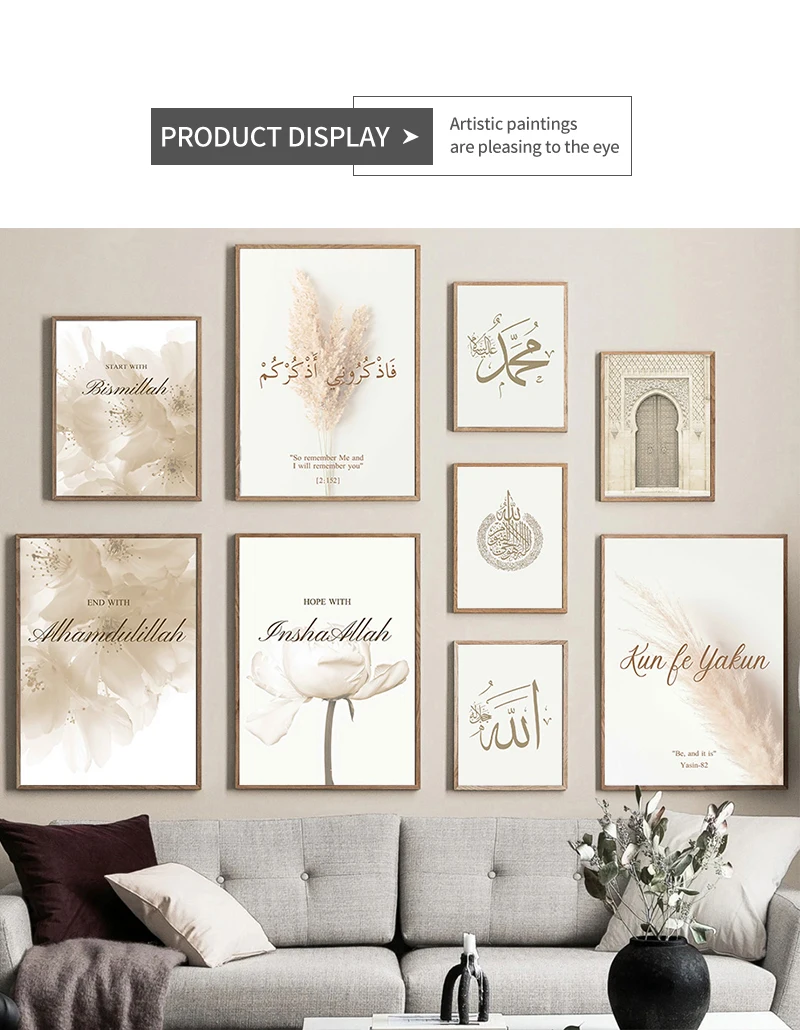 Исламский плакат с бежевыми цветами, печать на холсте, здание марок...