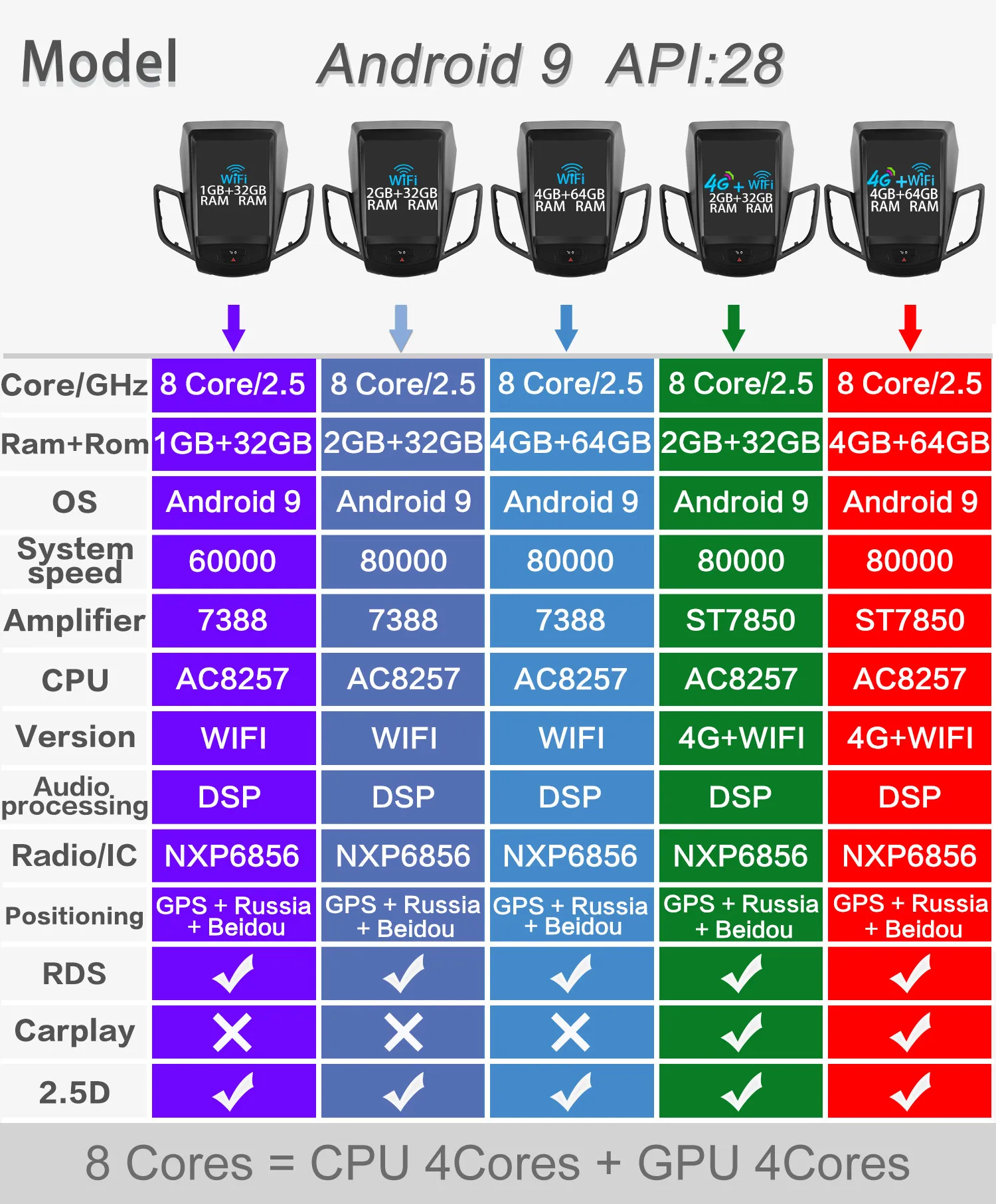 8 coresEqual to CPU 4 core plus GPU 4 core