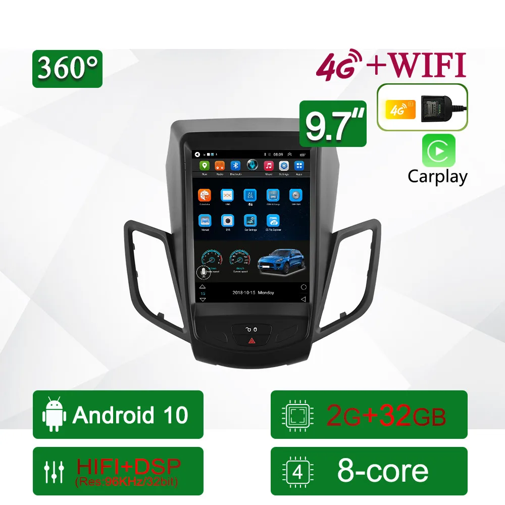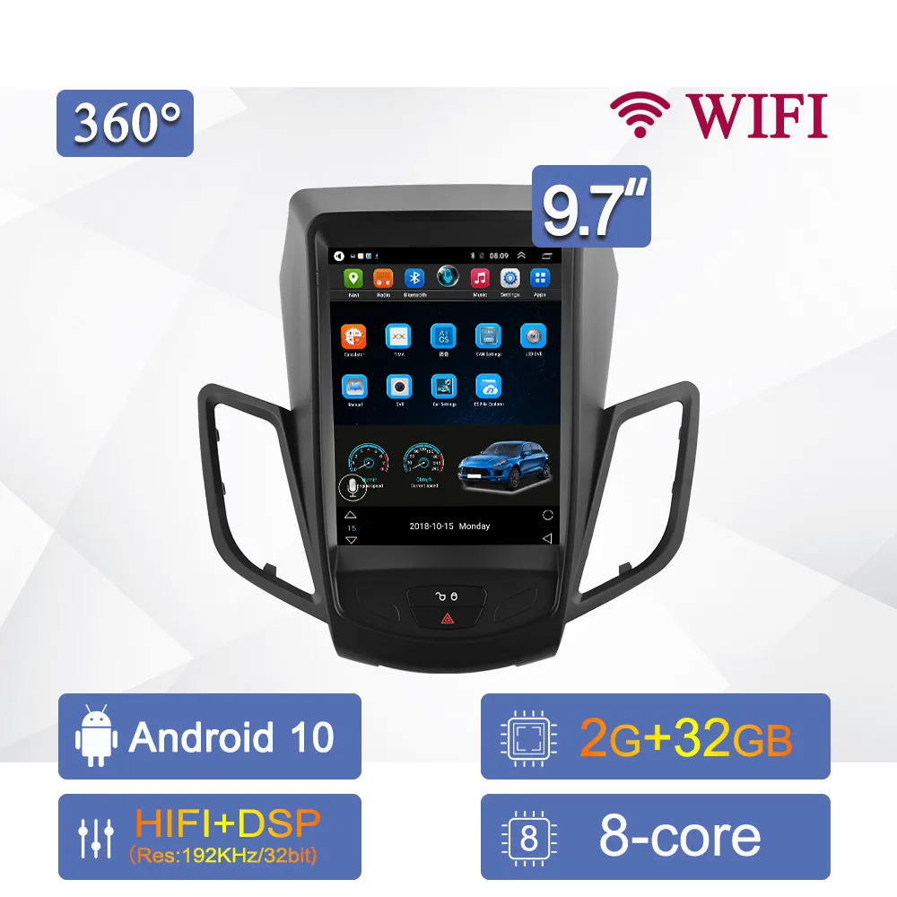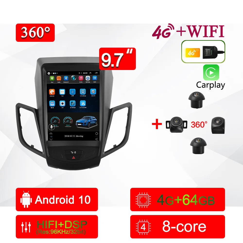 360 вспомогательная система 4G 8 ядер Android 10 автомобильное радио мультимедийный видеоплеер для Ford Fiesta 2009 2010-2016 навигация GPS 2 DIN
