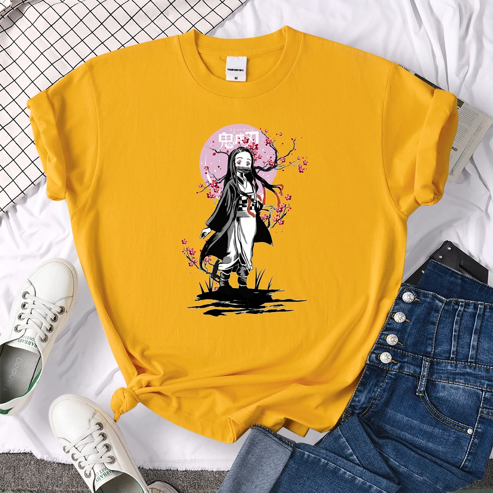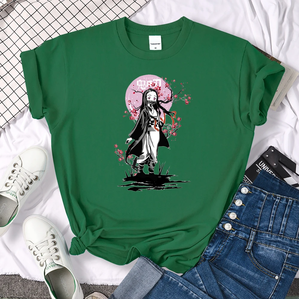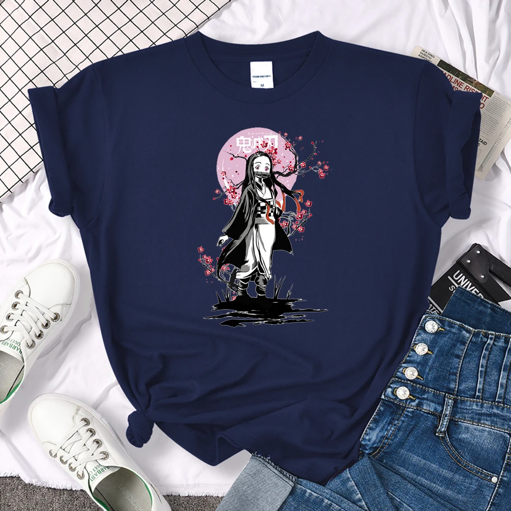 Футболка женская с мультяшным принтом из аниме рассекающий демонов, удобный дышащий Топ, мягкая приятная для кожи футболка, большие размеры