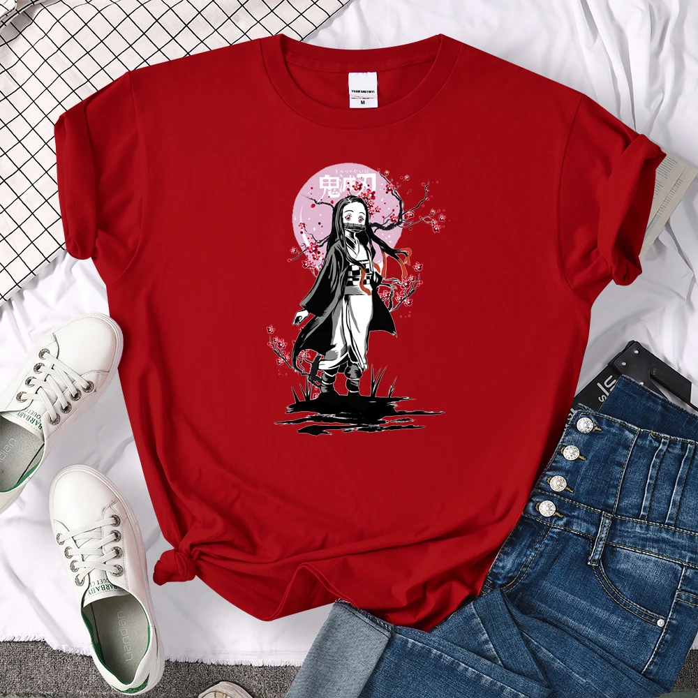 Аниме Demon Slayer Kamado Nezuko футболка с мультяшным принтом ladys большой размер удобные дышащие топы женские мягкие безвредные для кожи футболки