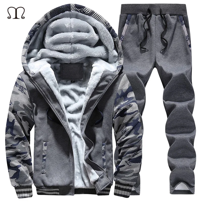 Повседневный Спортивный костюм для мужчин, утепленная флисовая толстовка с капюшоном и спортивные штаны, зимний Камуфляжный свитшот, спортивная одежда, мужской спортивный костюм, 2022