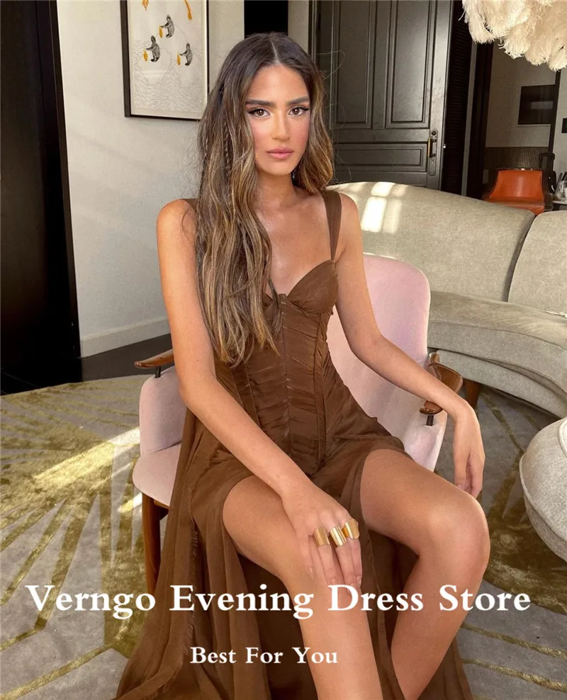 Женское длинное платье для выпускного вечера Verngo, кофейные шелковые шифоновые вечерние платья а-силуэта с боковыми складками для торжественных случаев
