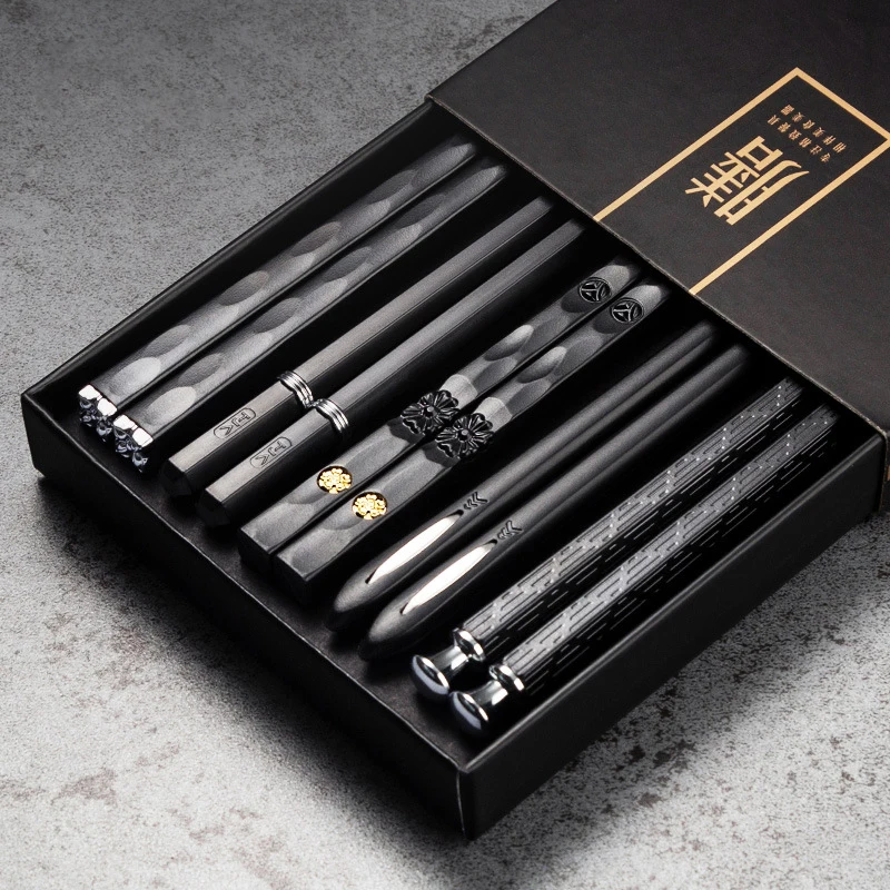 Набор китайских палочек для еды, многоразовые металлические палочки для суши, 5 пар
