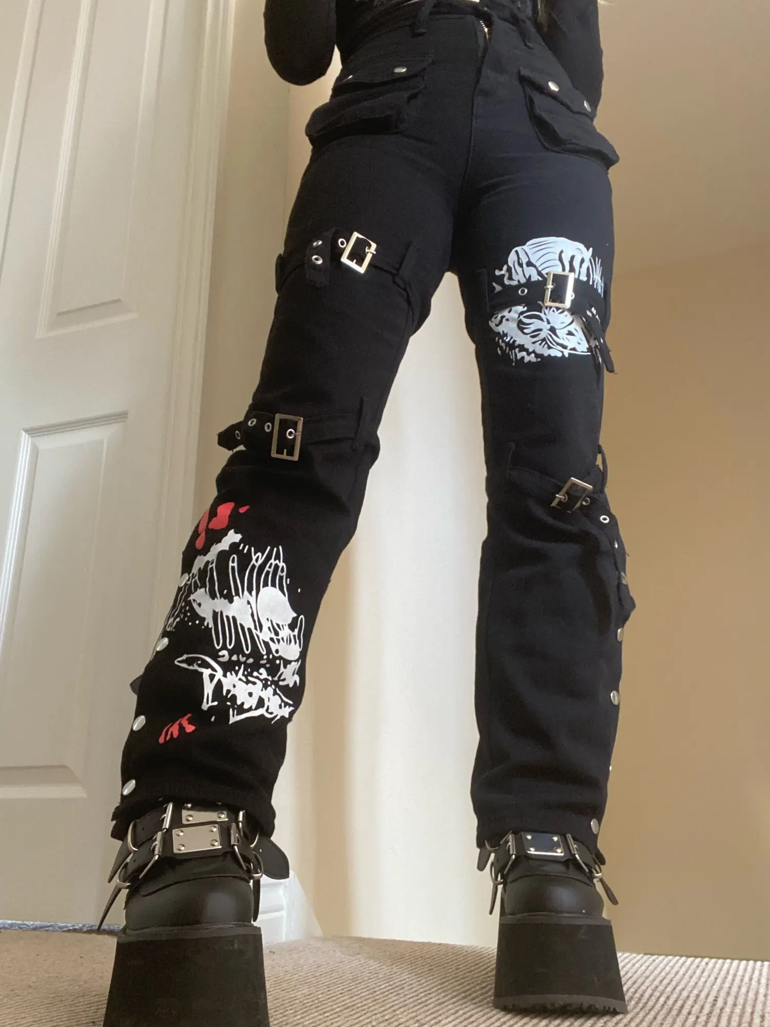 Штаны замечательные! Приехали быстрее чем обещали. Хорошо сели, только сказывают движения. На ощупь материал приятный. Заклёпки и печать качественные. Минусы: торчат нитки (легко стряхнуть), кончики ремешков толстоваты тяжело просунуть в бляшку (снимать их постоянно не надо, так что не страшно), в описании завышенная талия, но на самом деле обычная (тоже не беда) Заказом довольна. Младшая сестра оценила