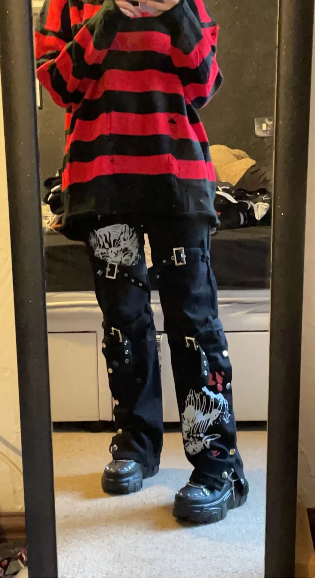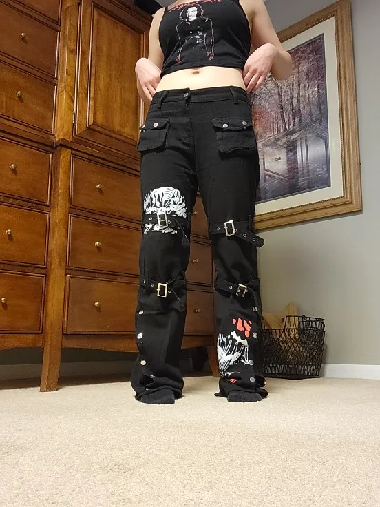Эти брюки идеальны! Я был немного болен, когда покупаю их, потому что покупать брюки онлайн всегда немного сложно, но это было абсолютно идеально! Выглядит очень хорошо, как на картинке, и очень удобно. Идеально сочетается с демониями. Я бы порекомендовал вам размер больше (что мне очень понравилось). Ремни под коленями не смогли закрыть, но это не имеет значения для меня лично. Купил несколько вещей в этом магазине, и все до сих пор было потрясающе, поэтому я рекомендую!