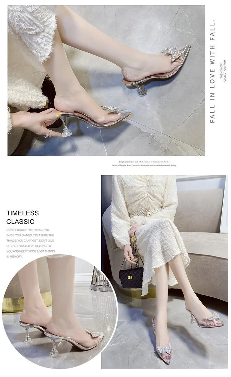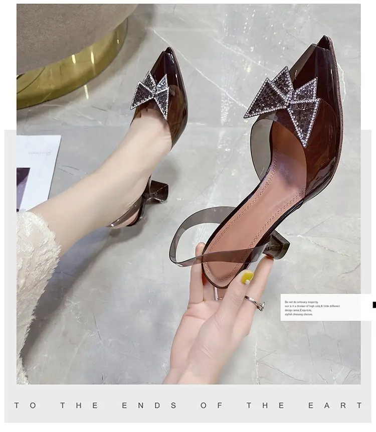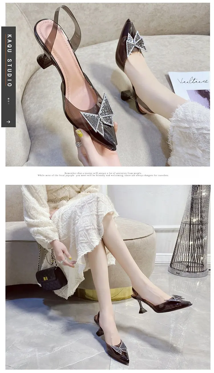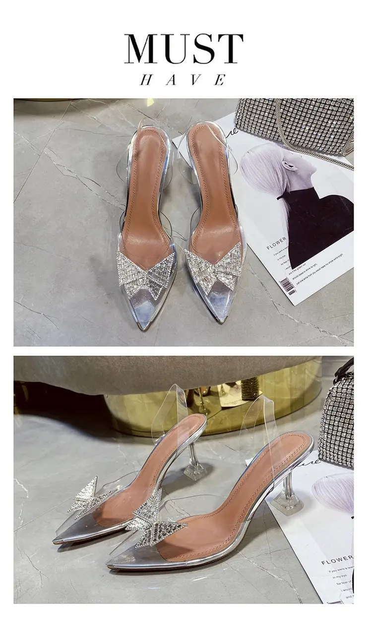 Женские прозрачные туфли-желе на высоком каблуке, офисные туфли на высоком каблуке с кристаллами и бабочками, Свадебная обувь для невесты, лето 2021