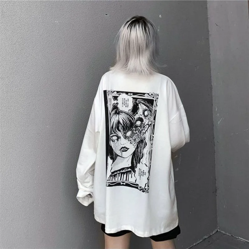 Женская футболка в стиле Харадзюку, белая футболка с рисунком аниме Graphic Mall в готическом стиле, в стиле Харадзюку, топы в стиле эмо, темная академическая Эстетическая альтернативная одежда