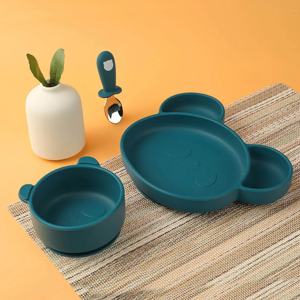 1 комплект, детские силиконовые миски, обеденные чаши, форма панды, для кормления, BPA, Бесплатная посуда, тарелки с рисунками из мультфильмов, Детская миска для кормления, обеденная чаша