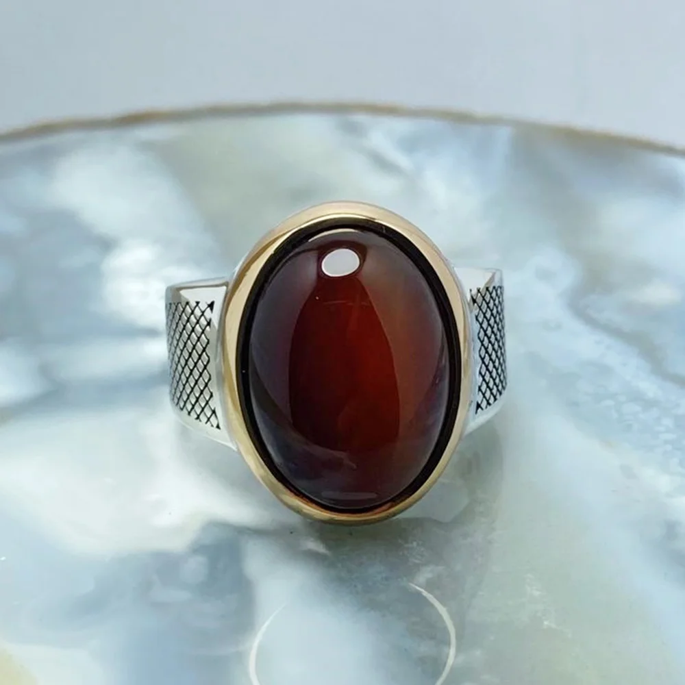 Кольцо мужское из серебра 925 пробы, ручной работы, с турецким агатом