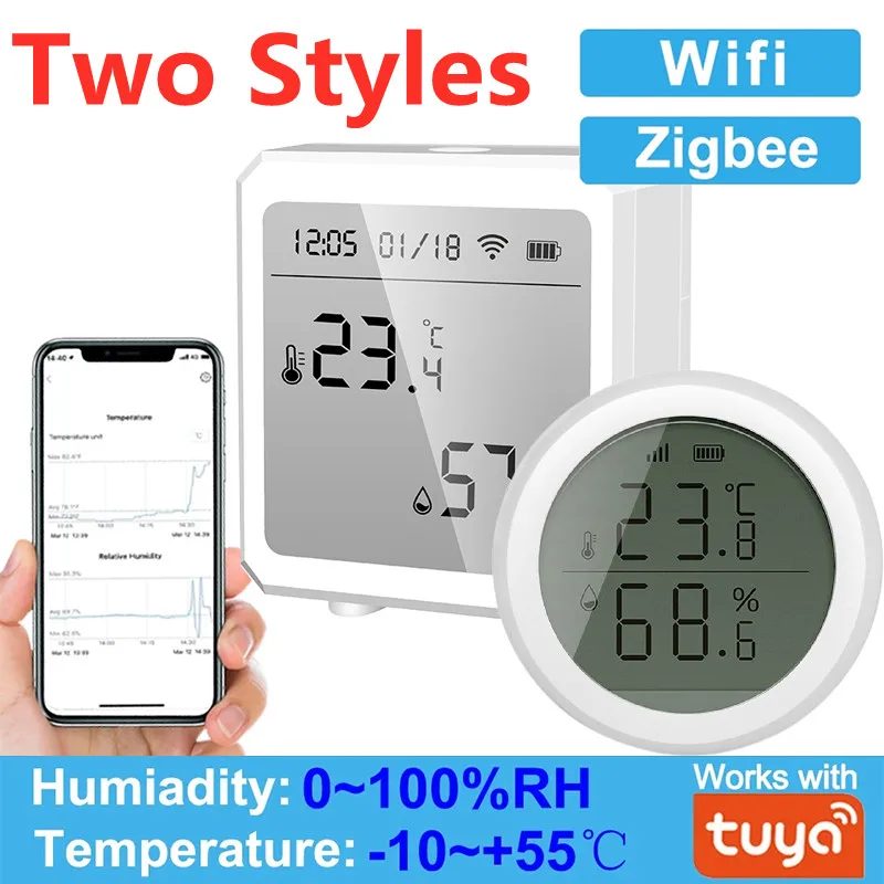 Датчик температуры и влажности Tuya Wi-Fi ZigBee, умный дом со свет...
