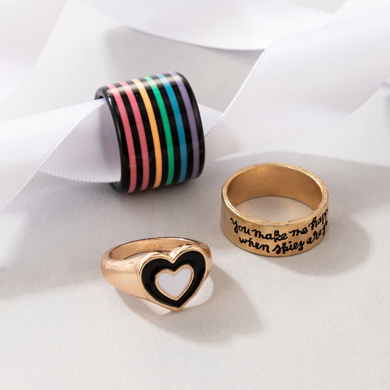 Tocona 3 шт.компл. романтические парные кольца в форме сердца для женщин новые красочные кольца из сплава металла свадебные ювелирные изделия Anillo 19914