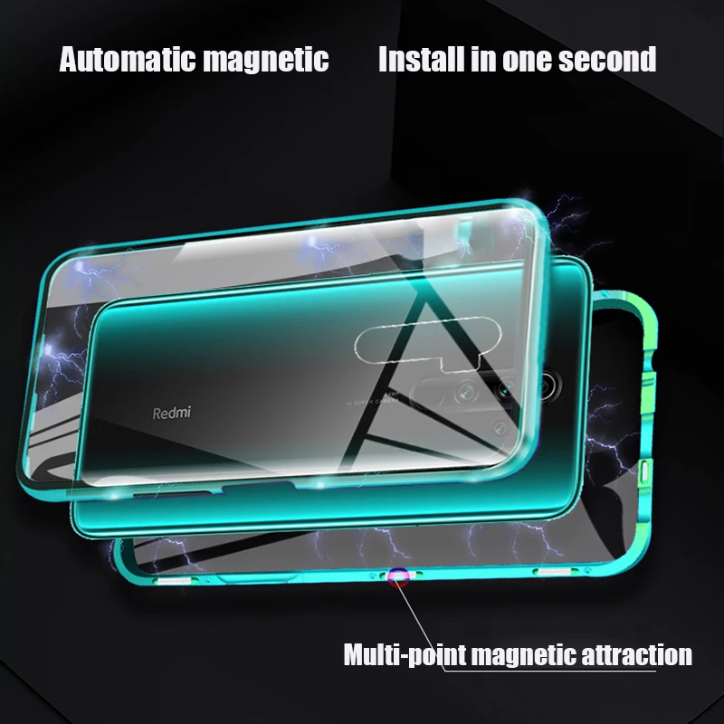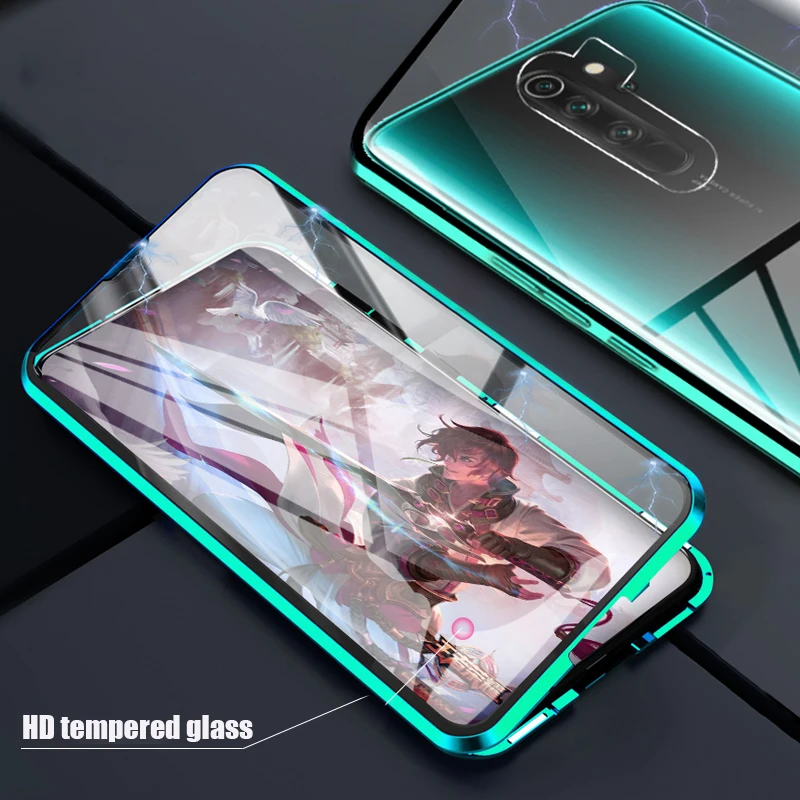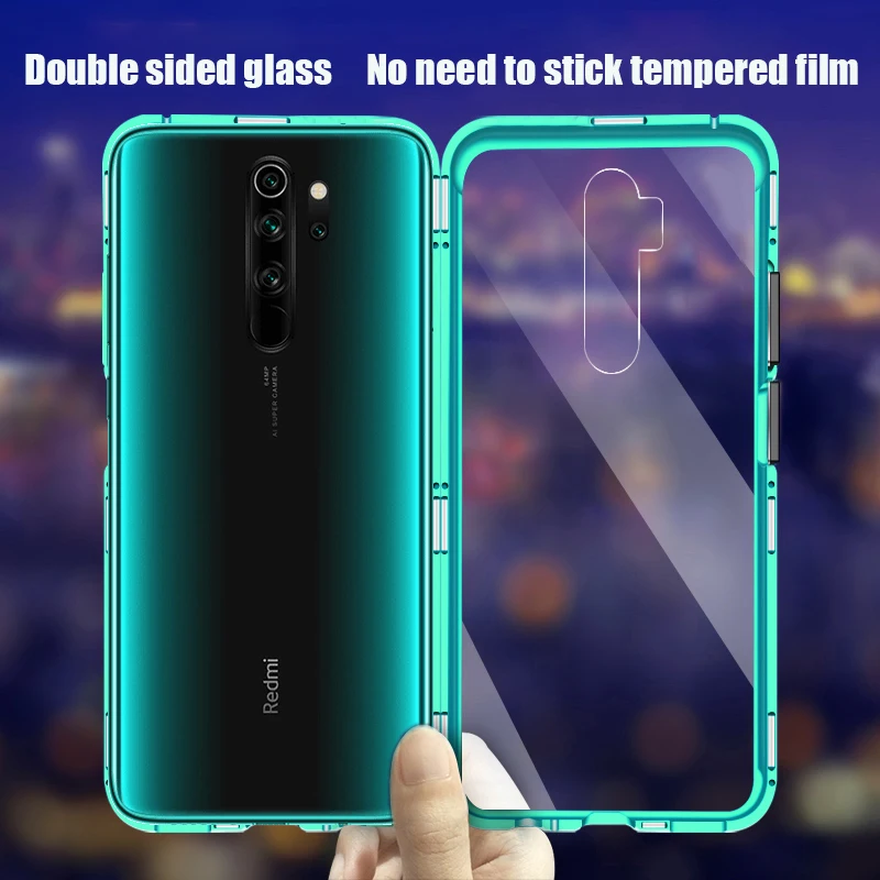 Металлический магнитный чехол для Xiaomi Redmi Note 10 9 9A 9C 9S 9T K40 8 8T 8A 7 Poco M3 X3 NFC 10T Pro, двухстороннее стекло