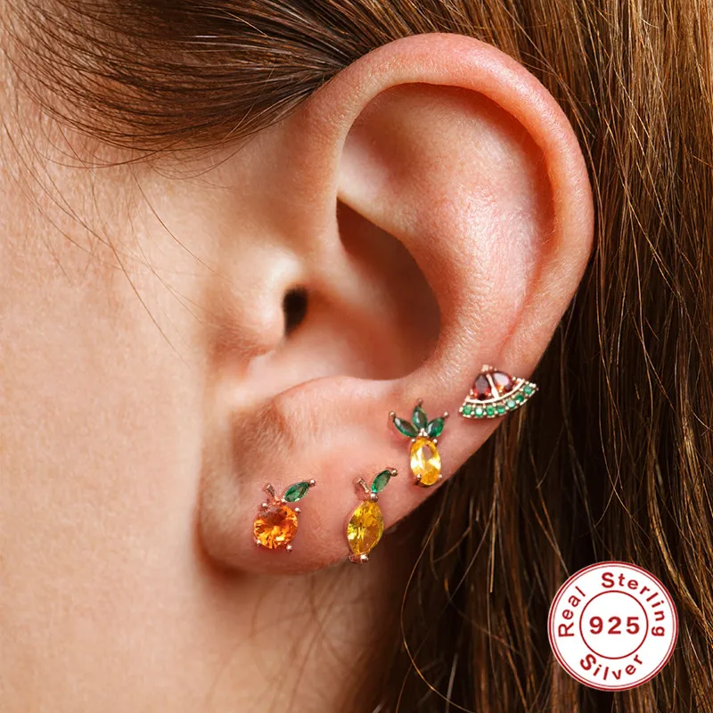 Серьги-гвоздики женские из серебра 925 пробы, в виде фруктов, растений