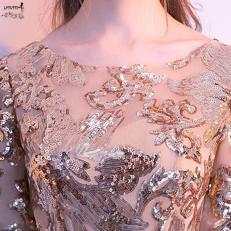 Женское длинное вечернее платье с вырезом лодочкой и блестками