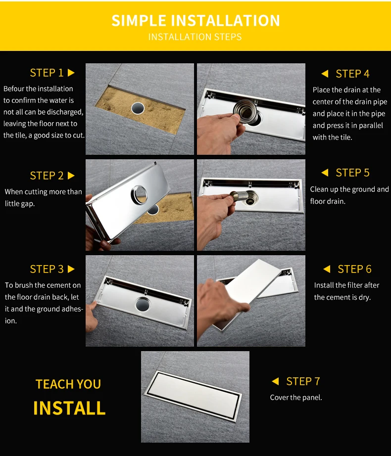 Вставка из нержавеющей стали, квадратный зернистый шлагбаум для мусора, линейный дренажный фильтр для ванной комнаты, быстрый дренаж, запах-resis