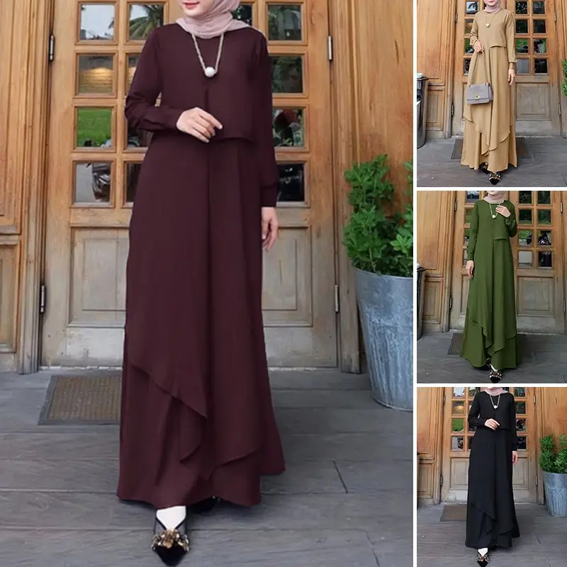 Винтажное мусульманское однотонное платье, Женский Осенний сарафан 2022 ZANZEA, повседневное лоскутное платье с длинным рукавом, женское турецкое платье