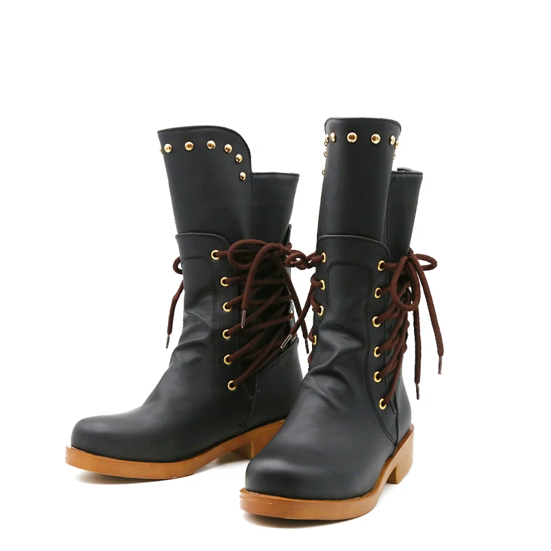 Женские ботинки до середины икры, с заклепками, на квадратном каблуке