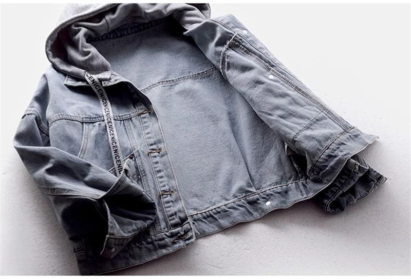 Куртка женская джинсовая короткая с капюшоном, свободная верхняя одежда в Корейском стиле, с множеством карманов, на пуговицах, в стиле бойфренд, весна-осень